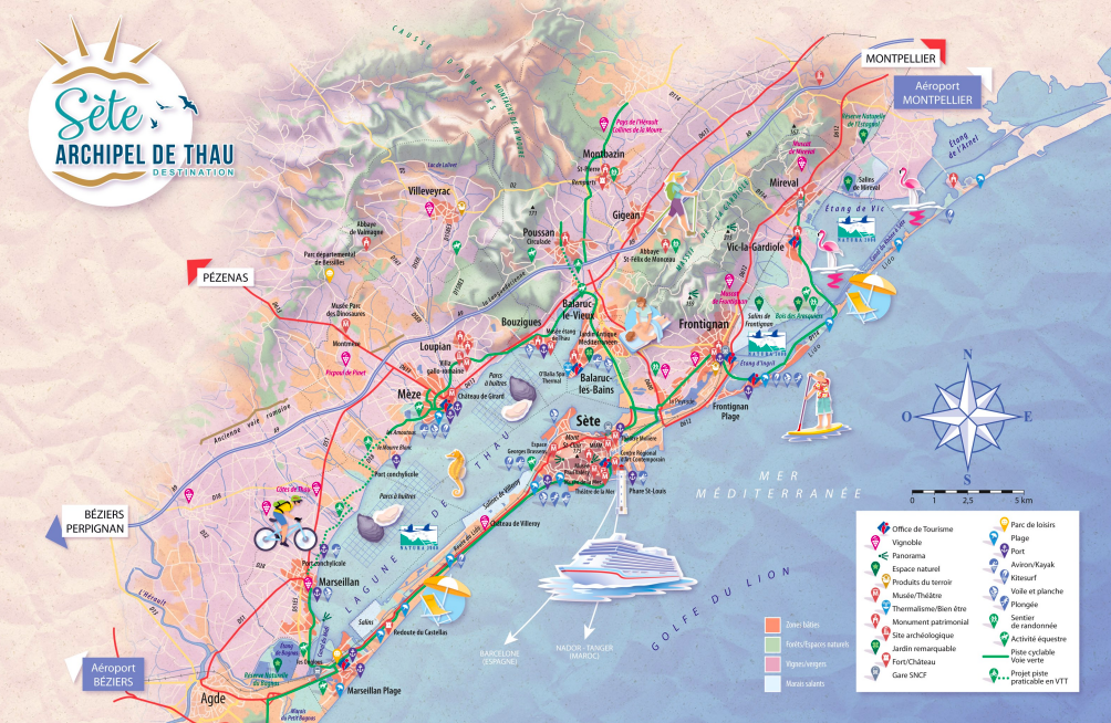 – En venant de Sète, dès le panneau de Mèze passé, traversez le centre de Mèze en restant sur la D613 direction Béziers jusqu’au rond-point indiquant « Ports départemantaux » à suivre, puis choisir « Port conchylicole – Le Mourre Blanc ».
